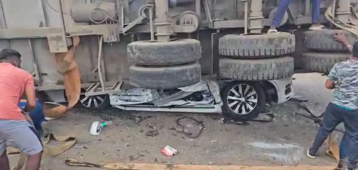 SUMMARY : Container lorry overturns on top of car in Bengaluru accident; Six people died