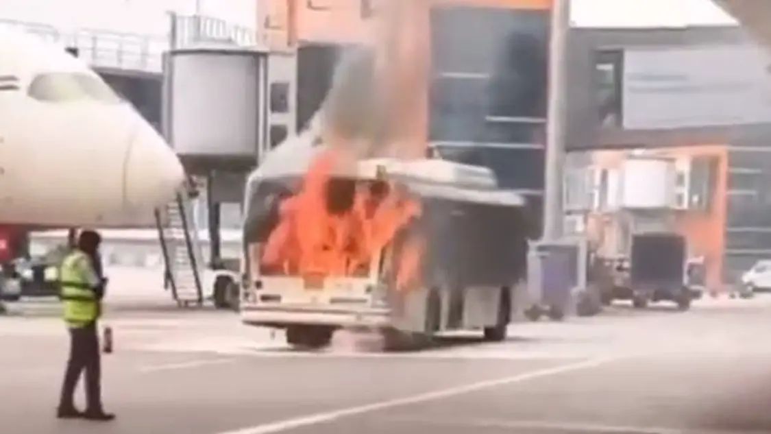 SUMMARY: Bus catches fire near Air India flight in Delhi