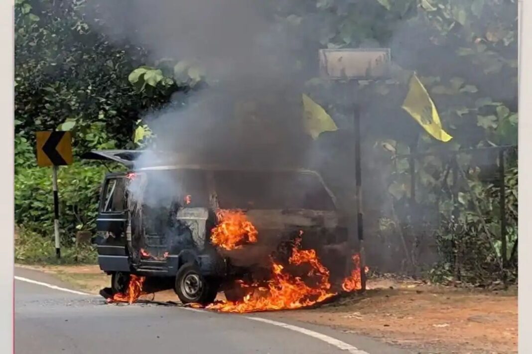 കോട്ടയം: കോട്ടയം പെരുവ ഇലഞ്ഞി റോഡില് ഓടിക്കൊണ്ടിരുന്ന മാരുതി വാൻ തീപിടിച്ചു കത്തിനശിച്ചു. പെരുമ്പടവം സ്വദേശി കിഴക്കേപറമ്പില് മോഹന്ദാസിന്റെ വാഹനമാണു കത്തി നശിച്ചത്. പെരുവ ഇലഞ്ഞി റോഡില് മറ്റപ്പള്ളിക്കുന്നു വാട്ടര് ടാങ്കിനു സമീപമാണ് അപകടം. വാഹനം പൂര്ണമായും കത്തി നശിച്ചു.