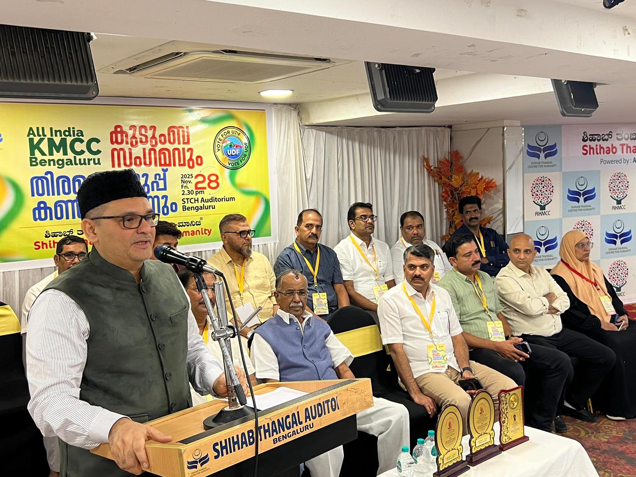 എഐകെഎംസിസി പ്രസിഡൻ്റ് ടി ഉസ്മാൻ അധ്യക്ഷത വഹിച്ചു. ജനറല് സെക്രട്ടറി എംകെ നൗഷാദ് സ്വാഗതം പറഞ്ഞു. ബെംഗളൂരു മലബാർ മുസ്ലിം അസോസിയേഷൻ പ്രസിഡൻ്റും പ്രഥമ എസ്ടി സി എച്ച് മാനവതാവാദ അവാർഡ് ജേതാവുമായ ഡോ. എൻ എ മുഹമ്മദിനെ ഷാൾ അണിയിച്ച് ആദരിച്ചു. ഇതോടനുബന്ധിച്ച് നടന്ന കുടുംബ സംഗമത്തിൽ വനിതാ ലീഗ് കേരള സംസ്ഥാന പ്രസിഡൻ്റ് സുഹറ മമ്പാട് മുഖ്യപ്രഭാഷണം നടത്തി. വിവിധ പരീക്ഷകളിൽ ഉന്നത വിജയം നേടിയ ഡോ ഷഫ്ന ഫാത്തിമ, ഡോ ഷഫ്ന ഷറിൻ, എം പി അഫ്സൽ എന്നിവർക്കുള്ള ഉപഹാരങ്ങൾ സയ്യിദ് മുനവ്വറലി ശിഹാബ് തങ്ങൾ നൽകി. ഡോ എംഎ അമീറലി നന്ദിയും റഷീദ് മൗലവി പ്രാർത്ഥനയും നിർവഹിച്ചു.