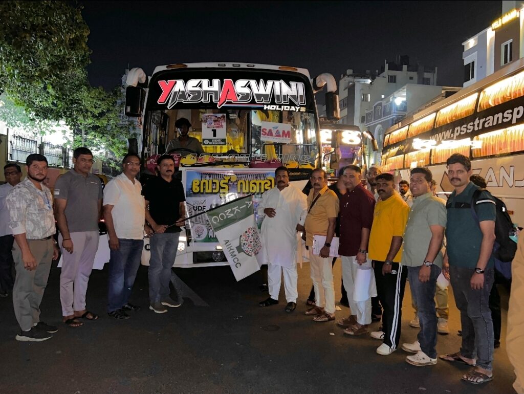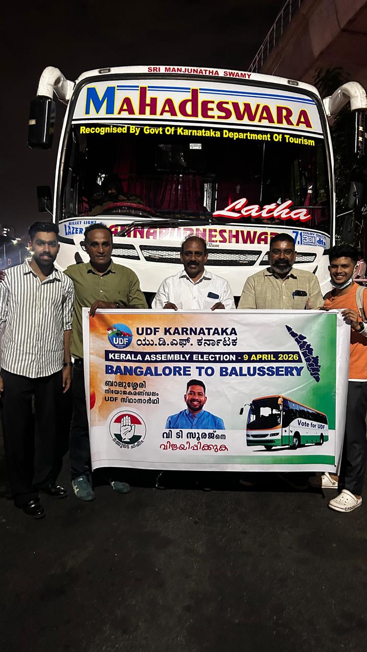 നഗരത്തിലെ വിവിധ ഭാഗങ്ങളിൽ നിന്നുമായി 50 ബസ്സുകൾ ആണ് മലബാറിലേക്കുള്ള മണ്ഡലങ്ങളിലേക്ക് യാത്ര തിരിച്ചത്. യു.ഡി.എഫ് കർണാടക നേതാക്കളായ അഡ്വക്കറ്റ് സത്യൻ പുത്തൂർ, നാസർ നീലസാന്ദ്ര, ജയ്സൺ ലൂക്കോസ് ,അലക്സ് ജോസഫ്, ടി.സി. സിറാജ്, റഹീം ചാവശ്ശേരി, ഷംസുദ്ദീൻ കൂടാളി, വിനു തോമസ്, അബ്ദുല്ലത്തീഫ്, സഞ്ജയ് അലക്സ്, മുഫ് ലിഫ് പത്തായപുര, എം.കെ. നൗഷാദ്, സുബൈർ കായക്കൊടി, സുബൈർ മല്ലേശ്വരം, അബ്ദുൽ കബീർ, അജ് മല്, സിദ്ദിഖ് തങ്ങൾ, അഡ്വക്കേറ്റ് രാജ്മോഹൻ, ഡോക്ടർ നകുൽ, അഡ്വക്കറ്റ് പ്രമോദ് വര പ്രത് എന്നിവർ നേതൃത്വം നൽകി.