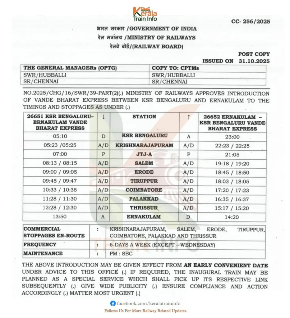 SUMMARY: Bengaluru-Ernakulam Vande Bharat soon; three stops in Kerala