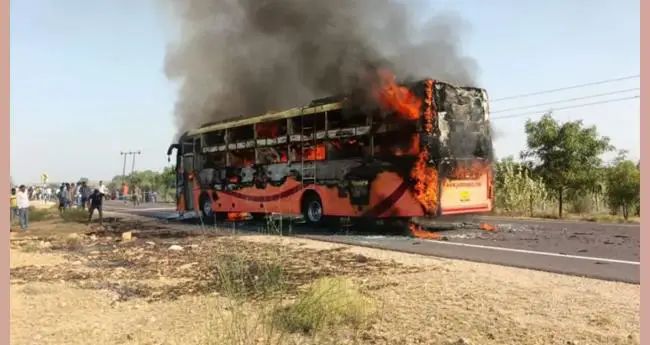 SUMMARY: Bus catches fire in Rajasthan; 15 people injured