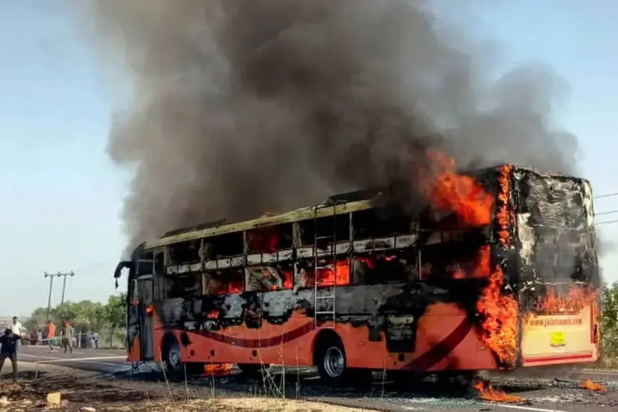 SUMMARY: Bus catches fire in Rajasthan; 20 dead, many injured in burn injuries