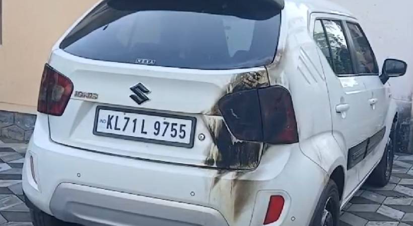 പുലർച്ചെ ഒന്നരയോടെയാണ് ബൈക്കിൽ എത്തിയ മൂന്നംഗ സംഘം ഗെയ്റ്റ് തുറന്ന് കൈയിൽ കരുതിയ പെട്രോൾ ഒഴിച്ച് കാർ കത്തിച്ചത്. സംഭവത്തിൽ പോലീസ് അന്വേഷണം ആരംഭിച്ചു. പ്രതികളെ പറ്റി വിവരം ലഭിച്ചതായാണ് സൂചന.