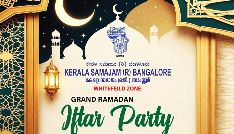 ബെംഗളൂരു: കേരള സമാജം വൈറ്റ് ഫീൽഡ് സോണിന്റെ ആഭിമുഖ്യത്തിൽ സംഘടിപ്പിക്കുന്ന സമൂഹ നോമ്പുതുറയും ഇഫ്താർ സംഗമവും ഇന്ന് വൈകിട്ട് ആറു മണിമുതല് കാടുഗോഡി ഈദ ഗാഹ് മൈതാനിയിൽ നടക്കും. സമൂഹ നോമ്പുതുറയ്ക്കും നിസ്കാര ചടങ്ങുകൾക്കും ഉസ്താത് അബ്ബാസ് നിസാമി നേതൃത്വം നൽകും. തുടർന്ന് നടക്കുന്ന മതമൈത്രി യോഗത്തിൽ പ്രമുഖ രാഷ്ട്രീയ-സംസ്കാരിക നേതാക്കന്മാർ പങ്കടുക്കും. കൂടുതൽ വിവരങ്ങൾക്ക്: