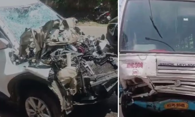SUMMARY:KSRTC bus and car collide in Kollam; 10 injured