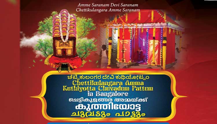 ബെംഗളൂരു: എസ്എന്ഡിപി യോഗം ബെംഗളൂരു യൂണിയന്റെ ആഭിമുഖ്യത്തിൽ ചെട്ടികുളങ്ങര അമ്മയുടെ ഇഷ്ട വഴിപാടായ കുത്തിയോട്ടച്ചുവടും പാട്ടും ബെംഗളൂരുവില് 23 ന് നടക്കും. വൈകിട്ട് 5 മുതൽ 9 വരെ തമ്മനഹള്ളി ശ്രീനാരായണ നഗറിൽ ഓഷൻസ് എലിമെന്ററി സ്കൂൾ ഗ്രൗണ്ടിലാണ് പരിപാടി നടക്കുന്നത്. ചെട്ടികുളങ്ങര ശ്രീദേവി കുത്തിയോട്ട സമിതിയിലെ അമ്പതോളം കലാകാരന്മാരാണ് പരിപാടി അവതരിപ്പിക്കുന്നത്. പരിപാടിയിലേക്ക് ഏവരെയും സ്വാഗതം ചെയ്യുന്നതായി എസ്എൻഡിപി യൂണിയൻ ബെംഗളൂരു സെക്രട്ടറി