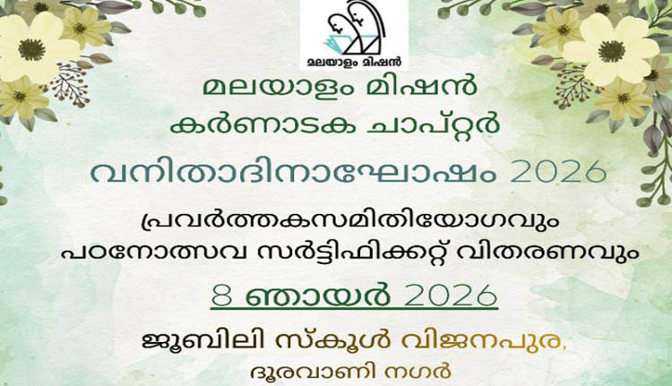 ബെംഗളൂരു: മലയാളം മിഷൻ കർണാടക ചാപ്റ്റർ വനിതാദിനാഘോഷവും പ്രവര്ത്ത സമിതിയോഗവും പഠനോത്സവ സര്ട്ടിഫിക്കറ്റ് വിതരണവും മാർച്ച് 8 ന് രാവിലെ 10.30 മുതൽ വിജനപുര ജൂബിലി സ്കൂളില് നടക്കും. വനിതാദിനാഘോഷങ്ങളുടെ ഭാഗമായി വിവിധ മത്സരങ്ങള് ഉണ്ടായിരിക്കും.