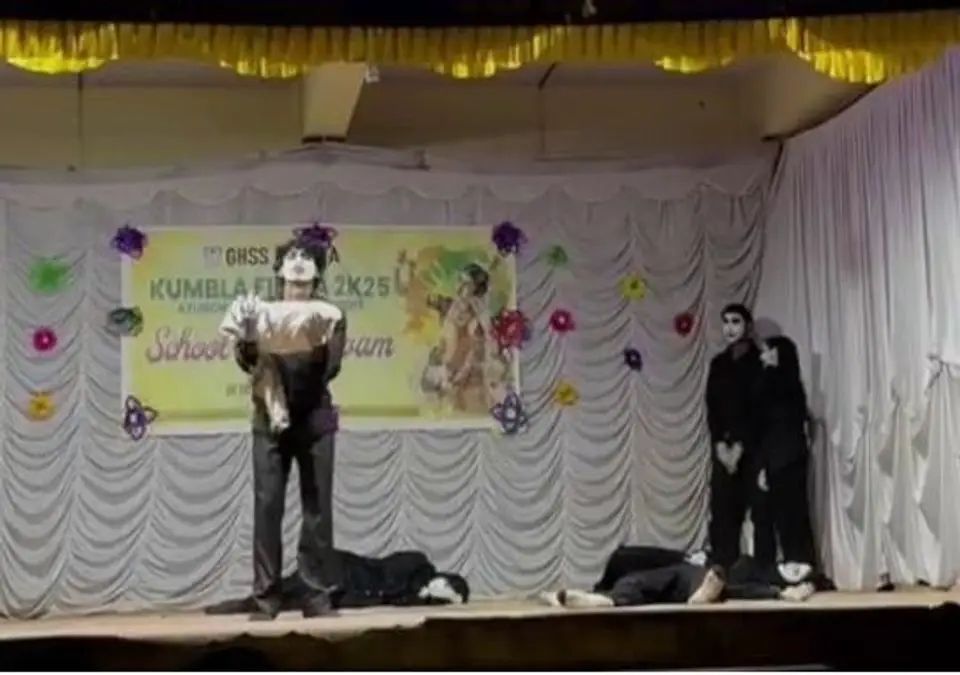 കാസറഗോഡ്: കുമ്പള ഗവ. ഹയർ സെക്കൻഡറി സ്കൂള്‍ കലോത്സവത്തില്‍ അധ്യാപകർ തടഞ്ഞ പലസ്തീൻ ഐക്യദാർഢ്യ മൈം അതേ വേദിയില്‍ വീണ്ടും അവതരിപ്പിച്ചു. പൂർണമായും കലോത്സവ നിബന്ധനകള്‍ പാലിച്ചായിരുന്നു മൈം. വെള്ളിയാഴ്ച മൈം തടസ്സപ്പെടുത്തിയ അധ്യാപകർ ഇന്ന് സ്കൂളില്‍ എത്തിയില്ല.