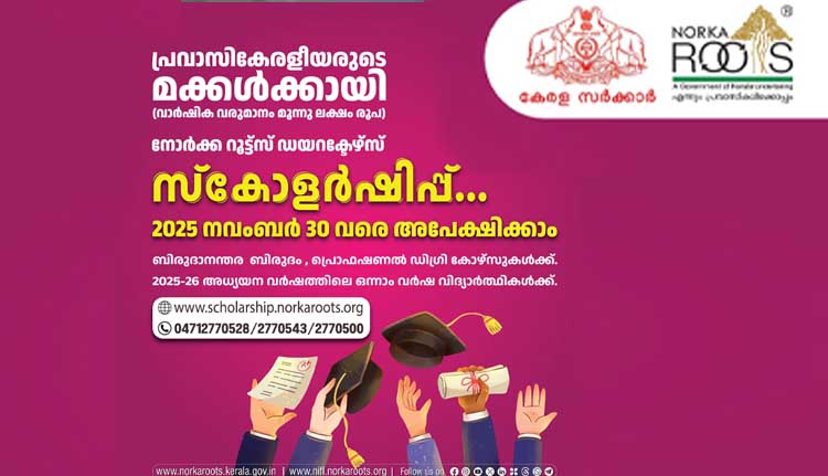 തിരുവനന്തപുരം: പ്രവാസി കേരളീയരുടെയും തിരികെയെത്തിയ പ്രവാസികളുടെയും മക്കൾക്ക് ഉന്നത വിദ്യാഭ്യാസത്തിന് ധനസഹായം നൽകുന്ന നോർക്ക-റൂട്ട്സ് ഡയറക്ടേഴ്സ് സ്കോളർഷിപ്പിലേയ്ക്ക് അപേക്ഷ ക്ഷണിച്ചു. രണ്ട് വർഷത്തിലധികമായി വിദേശ രാജ്യത്ത് ജോലി ചെയ്യുന്ന, വാർഷിക വരുമാനം മൂന്നു ലക്ഷം രൂപ വരെയുളള പ്രവാസികേരളീയരുടെയും മുന് പ്രവാസികളുടേയും മക്കള്ക്കാണ് അപേക്ഷിക്കാന് കഴിയുക. ബിരുദാനന്തര ബിരുദ കോഴ്സുകൾക്കും പ്രൊഫഷണൽ ഡിഗ്രി കോഴ്സുകൾക്കും 2025-26 അധ്യയന വർഷത്തിലെ ഒന്നാം വര്ഷ വിദ്യാർത്ഥികൾക്കാണ് സ്കോളര്ഷിപ്പിന് അര്ഹത. താല്പര്യമുളളവര് 2025 നവംബര് 30 നകം അപേക്ഷ നല്കേണ്ടതാണ്. സ്കോളര്ഷിപ്പ് പോര്ട്ടലായ www.scholarship.norkaroots.org സന്ദർശിച്ച് ഓണ്ലൈനായി മാത്രമേ അപേക്ഷ നല്കാനാകൂ.