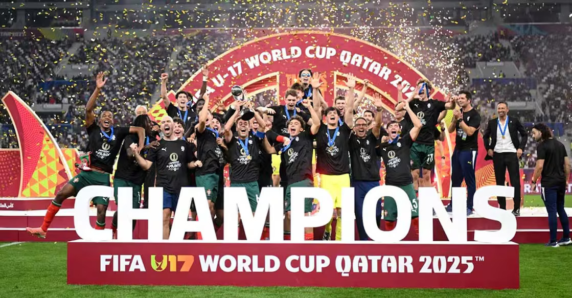 ദോഹ: ഓസ്ട്രിയയെ തകർത്ത് പോർച്ചുഗൽ അണ്ടർ 17 ലോകകപ്പ് ജേതാക്കളായി. ദോഹയിൽ നടന്ന ആവേശകരമായ ഫൈനലിൽ ഓസ്ട്രിയയെ മറുപടിയില്ലാത്ത ഒറ്റ ഗോളിന് തോൽപ്പിച്ചാണ് പോർച്ചുഗൽ ആദ്യമായി കപ്പുയർത്തിയത്. ആദ്യ പകുതിയിൽ 32 ാം മിനിറ്റിൽ അനിസിയോ കബ്രാൾ നേടിയ ഗോളാണ് മത്സരഫലം നിർണയിച്ചത്. പോർച്ചുഗലിന്റെ ആദ്യ അണ്ടർ 17 ലോകകപ്പ് കിരീടമാണിത്. ലൂസേഴ്സ് ഫൈനലിൽ ബ്രസീലിനെ പെനാൽറ്റി ഷൂട്ടൗട്ടിൽ പരാജപ്പെടുത്തി ഇറ്റലി മൂന്നാം സ്ഥാനം കരസ്ഥമാക്കി.