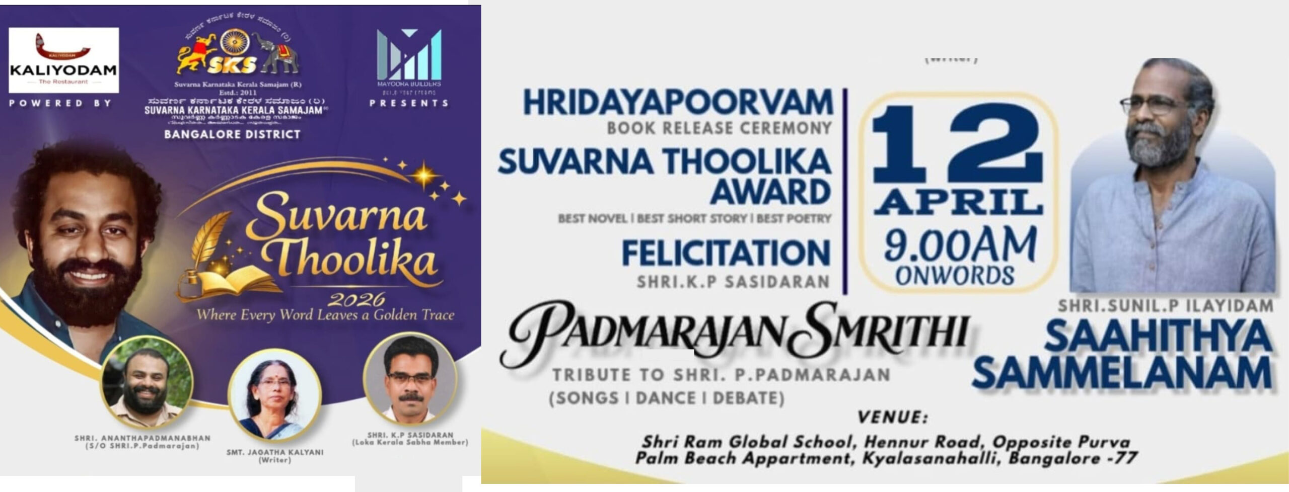 SUMMARY: Suvarna Karnataka Kerala Samajam Padmarajan Memorial and Debate Tomorrow