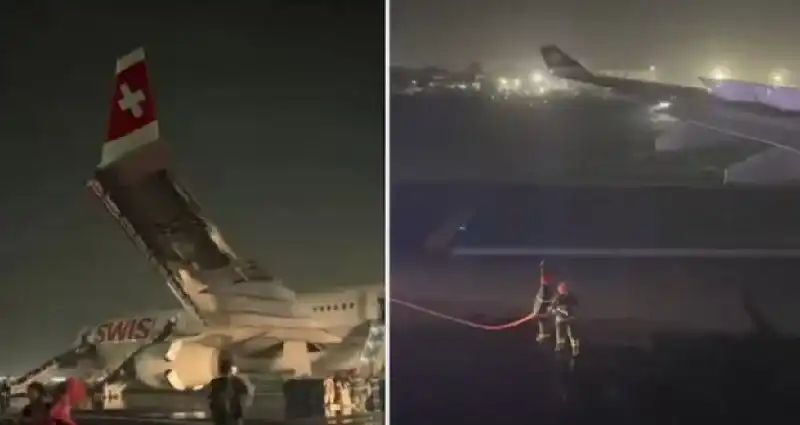 ഡല്‍ഹിയില്‍ ടേക്ക് ഓഫിനിടെ സ്വിസ് എയര്‍ വിമാനത്തിന് തീപിടിച്ചു; ആറ് പേര്‍ക്ക് പരുക്ക്