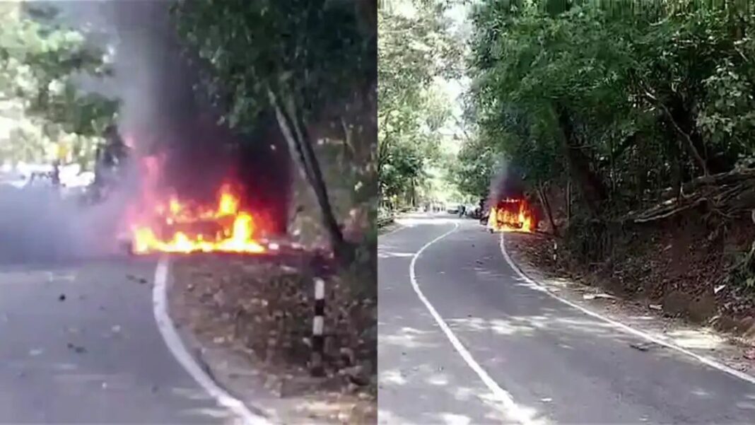 സഞ്ചാരികളെയുമായെത്തിയ ടെമ്പോ ട്രാവലറിന് തീപിടിച്ചു