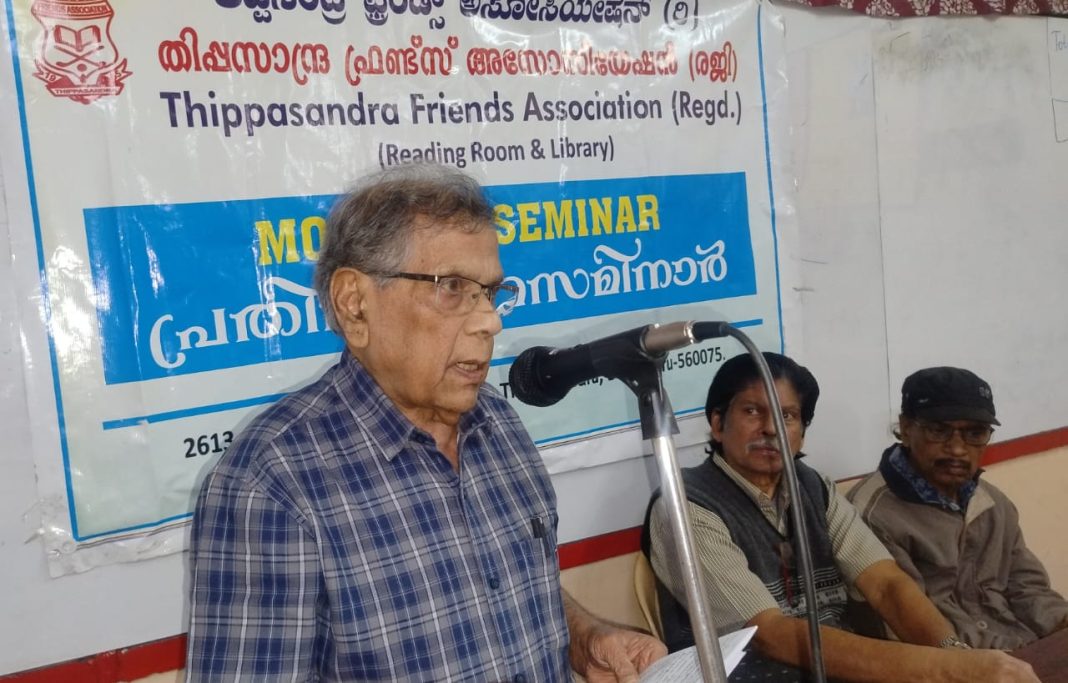 ബെംഗളൂരു: വയലാറിന്റെ അമ്പതാം ചരമവാർഷികത്തിന്റെ ഭാഗമായി തിപ്പസന്ദ്ര ഫ്രണ്ട്സ് അസോസിയേഷൻ നടത്തിയ അനുസ്മരണ സെമിനാറിൽ ടി എം ശ്രീധരൻ മുഖ്യപ്രഭാഷണം നടത്തി.