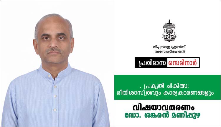 ബെംഗളൂരു: തിപ്പസാന്ദ്ര ഫ്രണ്ട്സ് അസോസിയേഷൻ പ്രതിമാസ സെമിനാർ ജനുവരി 25 ന് ഞായറാഴ്ച 4 മണിക്ക് തിപ്പസാന്ദ്ര ഹോളി ക്രോസ് സ്കൂളിൽ നടക്കും. ‘പ്രകൃതി ചികിത്സ: രീതിശാസ്ത്രവും കാര്യകാരണങ്ങളും’ എന്ന വിഷയത്തിൽ ഡോ. ശങ്കരൻ മണിപ്പുഴ സംസാരിക്കും. പുഷ്പ കാനാട് ചർച്ച ഉദ്ഘാടനം ചെയ്യും. പി. മോഹൻദാസ് അധ്യക്ഷത വഹിക്കും. ഫോൺ: 9964113800