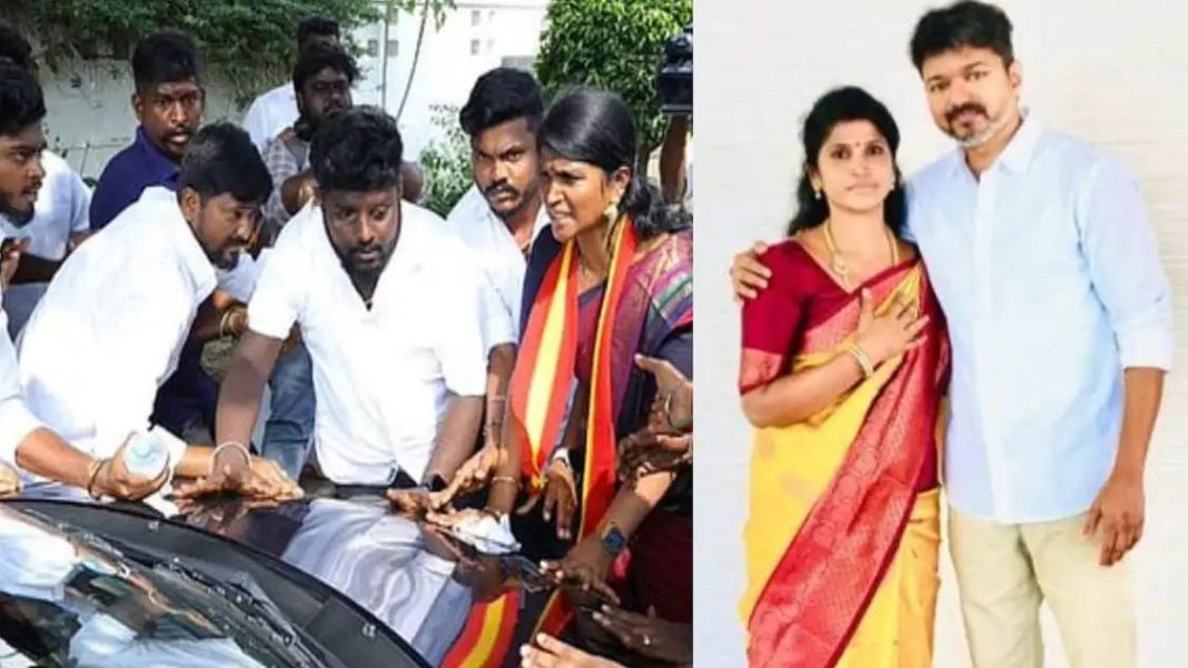 SUMMARY: TVK female leader who blocked Vijay’s car after not being made district secretary tried to commit suicide